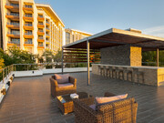 Широкая зона отдыха оборудована комфортабельными шезлонгами и зонтами, вмещающими до 300 человек. Вечером гости могут наслаждаться впечатляющими закатами и захватывающими видами Черного моря.